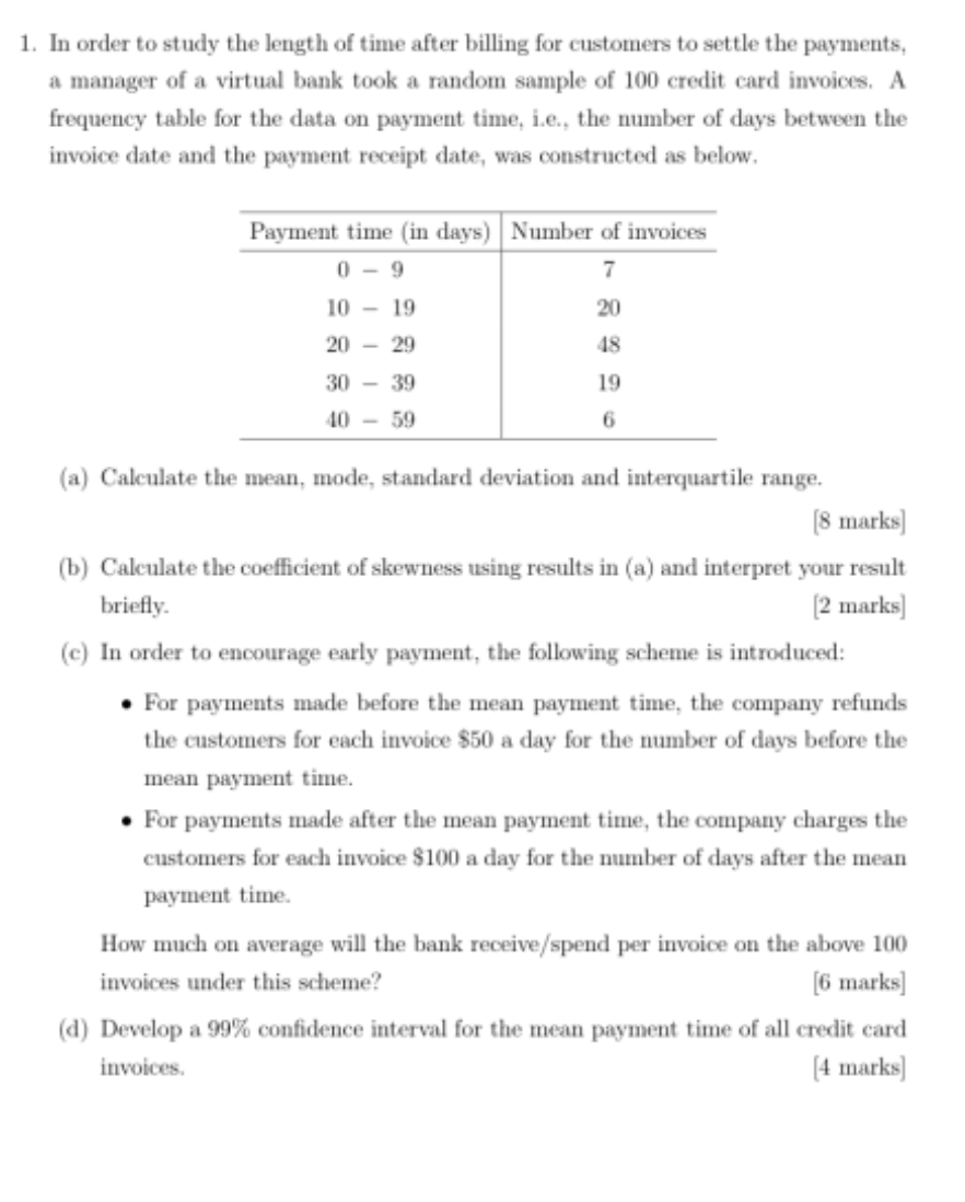 Solved 1 In Order To Study The Length Of Time After Billing Chegg Com
